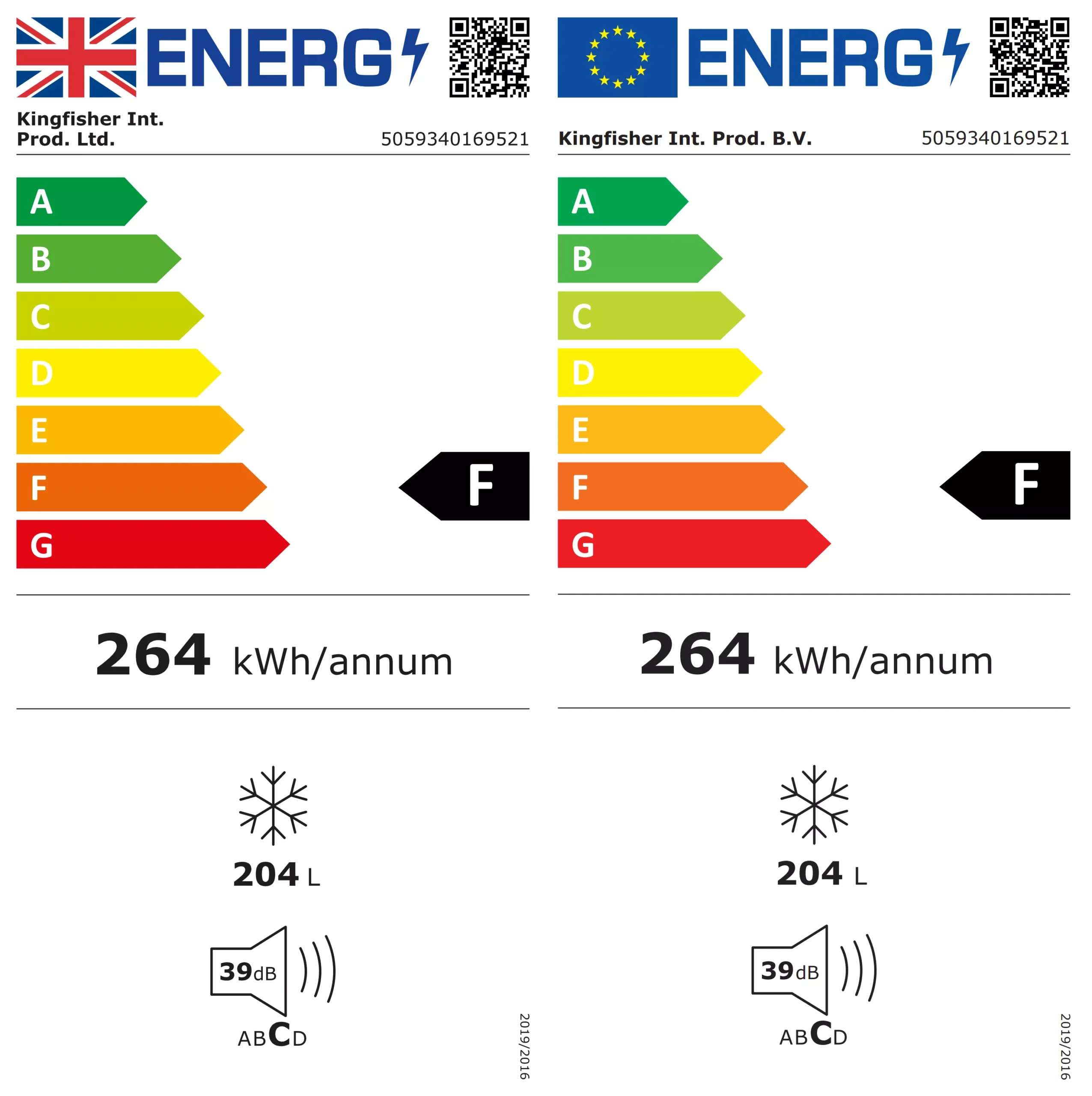 | Freezer volume | 204L |