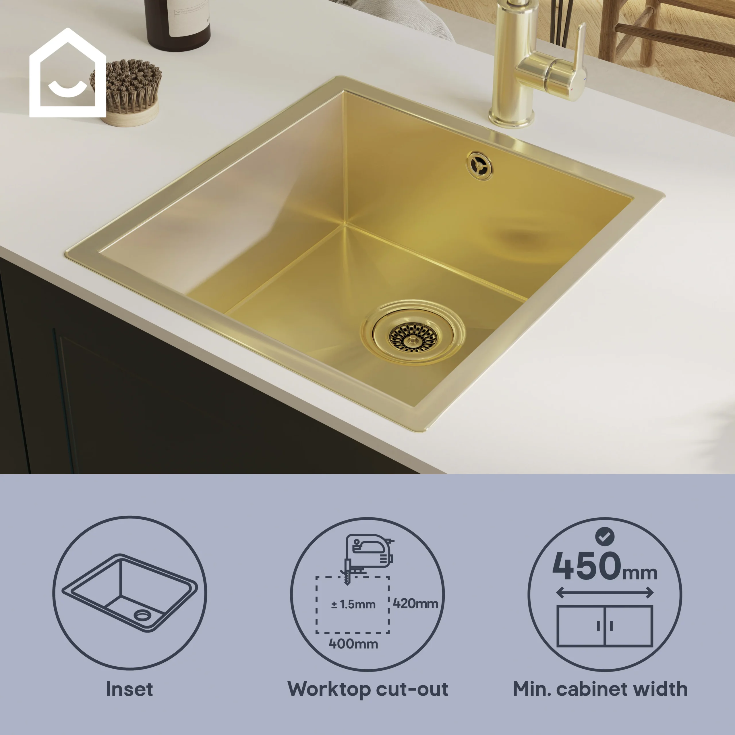 This sink from GoodHome offers a reliable, functional sink without compromising on style, with its stunning brushed brass colour that will add a luxurious touch to any kitchen.